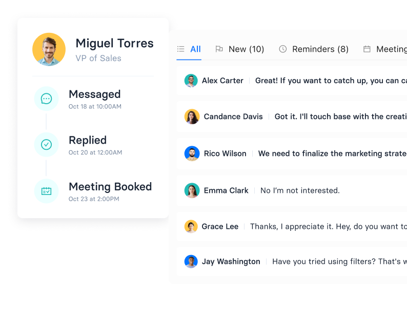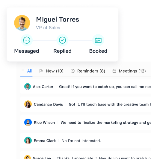 Drive meeting bookings with authentic, impactful conversations curated by AI-Powered .✦ communication insights, integrated into your CRM.
